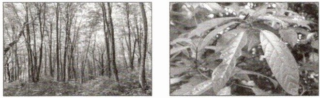 (2025·江苏扬州高一期末)常绿阔叶林在我国南方地区广泛分布。下图为我国某地常绿阔叶林及树叶景观图。据此完成 3~4 题。