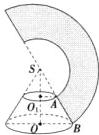 (2)如图所示,设圆台的上底面周长为c cm,因为扇形的圆心角是180°,故c = π·SA = 2π×10(cm),所以$SA = \frac{c}{π} =20 cm.$同理可得SB = 40 cm,所以AB = SB - SA = 20 cm,所以$S_{表} = S_{侧} + S_{上底} + S_{下底} = π(10 + 20)×20 + π×10² + π×20² = 1100π(cm²).$故圆台的表面积为1100πcm².