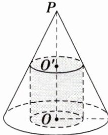 [教材呈现] (人教 A 必修二 P120T4)如图,圆锥 $PO$ 的底面直径和高均是 $a$,过 $PO$ 的中点 $O'$ 作平行于底面的截面,以该截面为底面挖去一个圆柱,求剩下几何体的表面积和体积。