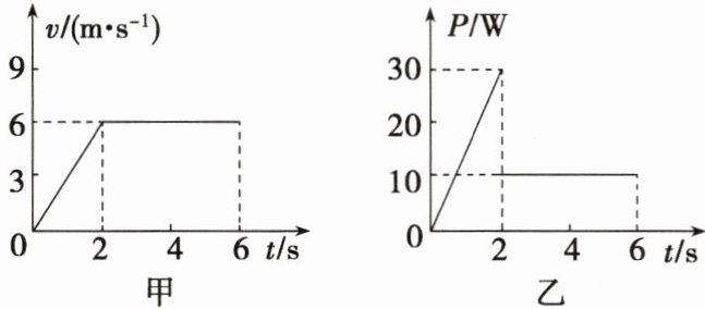 例2 放在粗糙水平地面上的物体受到水平拉力的作用,在$0\sim6s$内其速度与时间的关系图像和拉力的功率与时间的关系图像分别如图甲、乙所示。下列说法正确的是( )