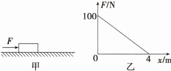 例4(多选)如图甲所示,质量为$4kg$的物体在水平推力作用下开始运动,推力大小$F$随位移大小$x$变化的情况如图乙所示,物体与地面间的动摩擦因数$\mu = 0.5$,$g$取$10m/s^2$,则( )