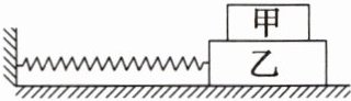 例3(多选)如图所示,甲、乙的质量分别为$m$和$M$,乙系在固定于墙上的水平轻弹簧的另一端,并置于光滑的水平面上,弹簧的劲度系数为$k$。将乙向右拉离平衡位置$x$后,无初速度释放,在以后的运动中甲、乙保持相对静止,则在弹簧恢复原长的过程中( )