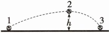 如图所示,质量为 $ m $ 的足球从水平地面上位置 1 被踢出后落在位置 3,在空中达到最高点 2 的高度为 $ h $,则足球( )