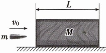 如图所示,在光滑水平面上静止放置一质量为 $M$、长为 $L$ 的木块,质量为 $m$ 的子弹水平射入木块。设子弹在木块内运动过程中受到的阻力不变,其大小 $F_{\mathrm{f}}$ 与射入初速度大小 $v_0$ 成正比,即 $F_{\mathrm{f}}=kv_0$($k$ 为已知常数)。改变子弹的初速度大小 $v_0$,若木块获得的速度最大,则( )