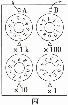 (3) 旋钮式电阻箱如图丙所示,电流从接线柱 A 流入,从 B 流出,则接入电路的电阻为______Ω。现欲将接入电路的电阻改为 2087Ω,最简单的操作方法是______。若用两个这样的电阻箱,则可得到的电阻值范围为______。