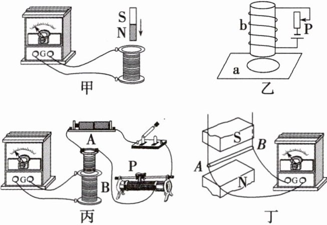 D.图丁中导体棒 $ AB $ 在磁场中上下运动时