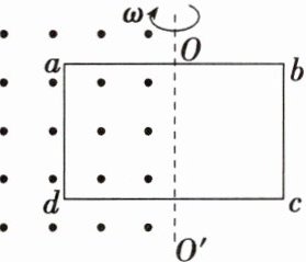 如图所示,矩形线圈 $ abcd $ 位于纸面内,面积为 $ S $,匝数为 $ N $,过 $ ab $ 中点和 $ cd $ 中点的连线 $ OO' $ 恰好位于垂直纸面向外的匀强磁场的右边界上,匀强磁场的磁感应强度为 $ B $。若线圈绕 $ OO' $ 轴从图示位置开始转动,下列说法正确的是( )