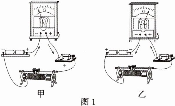 (1)首先按图 1 甲连接电路,闭合开关后,发现灵敏电流表指针向左偏转;再按图乙所示连接电路,闭合开关后,发现电流表指针向右偏转。进行上述实验的目的是检验 ________。
