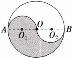 例3 (2024·河北张家口模拟) 如图为太极练功场示意图,半径为R的圆形场地由“阳鱼(白色)”和“阴鱼(深色)”构成,O点为场地圆心,其内部由两个圆心分别为$O_{1}$和$O_{2}$的半圆弧分隔。某晨练老人从A点出发沿“阳鱼”和“阴鱼”分界线走到B点,用时为t,下列说法正确的是( )