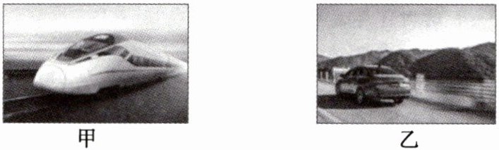 (多选) 图甲所示是我国“复兴号”高铁,考虑到乘客的舒适程度,高铁出站时,用时10分钟由静止加速到350 km/h;图乙所示为某汽车以108 km/h的速度急刹车时在2.5 s内停下来。若以车辆前进的方向为正方向,下列说法正确的是( )