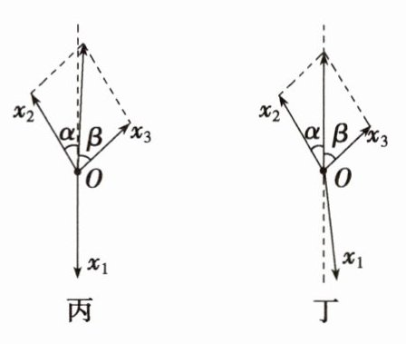 (2)实验中矿泉水瓶的重力方向始终竖直向下,所以$x_1$需要沿着竖直方向,故题图丙是正确的。
