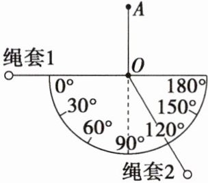 (2) 将绳套 1 由 $ 0^{\circ} $ 方向缓慢转动到 $ 60^{\circ} $ 方向,同时绳套 2 由 $ 120^{\circ} $ 方向缓慢转动到 $ 180^{\circ} $ 方向,此过程中保持橡皮筋与绳套的结点在 $ O $ 处不动,保持绳套 1 和绳套 2 的夹角 $ 120^{\circ} $ 不变。关于绳套 1 的拉力大小的变化,下列结论正确的是 ______(填选项前的字母)。