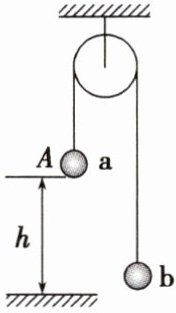 例4 (2024·河南新乡模拟)如图,一不可伸长的足够长轻绳跨过悬挂的光滑轻质定滑轮,两端系有质量分别为$0.3\ kg$和$0.2\ kg$的球a、b。控制球a静止在离地面高$h = 49\ cm$的A处,轻绳拉紧,取重力加速度$g = 10\ m/s^2$。现由静止释放小球,不计空气阻力,则( )