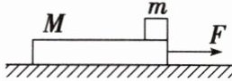 如图所示,光滑水平面上静止放着长为$L = 1.6\ m$、质量为$M = 3\ kg$的木板,一个质量为$m = 1\ kg$的物块放在木板的最右端,物块与木板之间的动摩擦因数为$\mu = 0.1$,今对木板施加一水平向右的拉力$F$,$g$取$10\ m/s^{2}$。