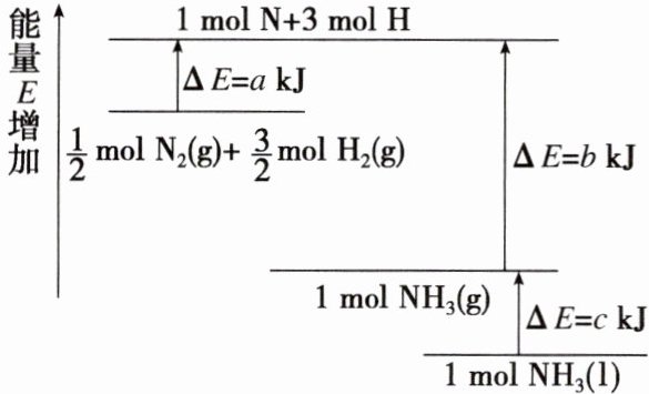 3.$N_2(g) + 3H_2(g) \rightleftharpoons 2NH_3(l)\ \ \Delta H = -2(c + b - a)\ kJ· mol^{-1}$