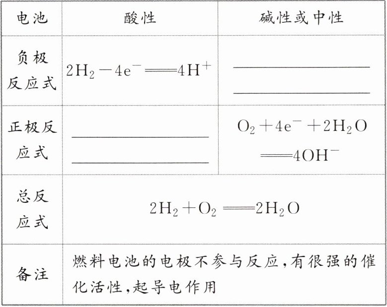 碱性或中性负极反应式:$2H_{2}-4e^{-}+4OH^{-}=4H_{2}O$;酸性正极反应式:$O_{2}+4e^{-}+4H^{+}=2H_{2}O$