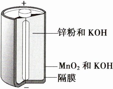 2. (2024·江苏卷)碱性锌锰电池的总反应为 $ {Zn + 2MnO_{2} + H_{2}O \xlongequal{} ZnO + 2MnOOH} $,电池构造示意图如图所示。下列有关说法正确的是(