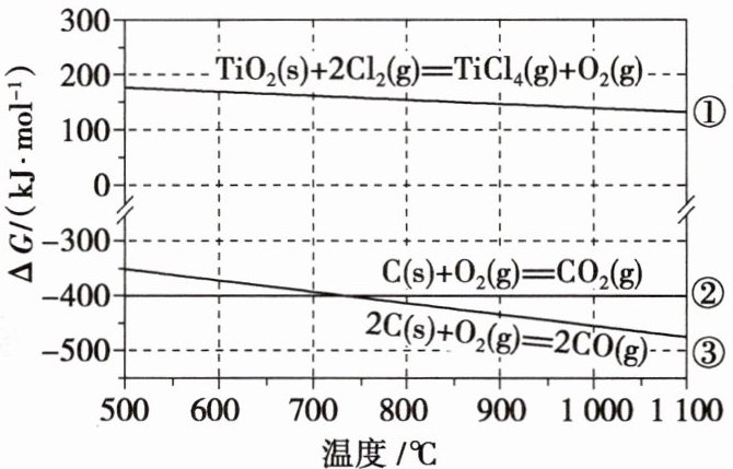 (填序号)。(2) $ 500\ ^{\circ}C \sim 1100\ ^{\circ}C $ 下,反应 $ TiO_2(s) + C(s) + 2Cl_2(g) = TiCl_4(g) + CO_2(g) $