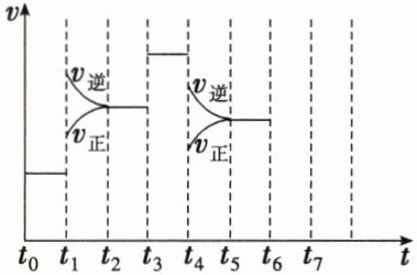 (1)根据题图可知,$t_0$~$t_1$、$t_2$~$t_3$、$t_3$~$t_4$、$t_5$~$t_6$时间段内,$v_正$、$v_逆$相等,反应处于平衡状态。