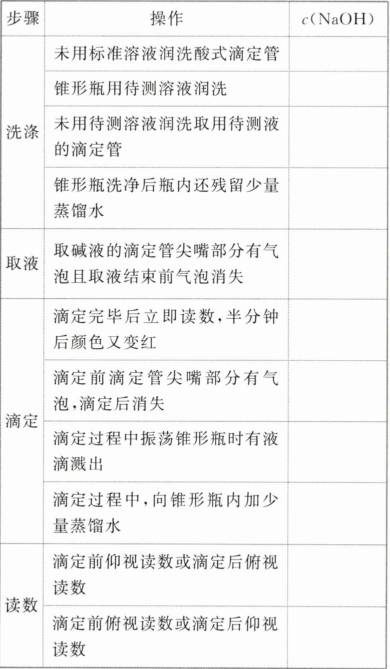 3. 以标准盐酸滴定待测 NaOH 溶液,用酚酞作指示剂为例,分析实验误差(填“偏高”“偏低”或“无影响”)。