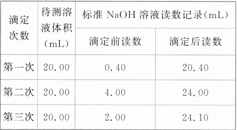 解析:取前两次所用NaOH溶液体积的平均值(第三次误差较大,舍去),然后代入公式进行计算: