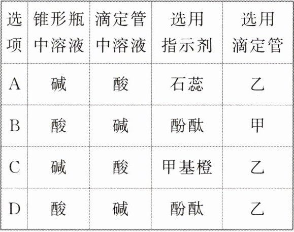 ②指示剂的变色范围。酸式滴定管不能盛放碱液,而碱式滴定管不能盛放酸液,指示剂应选择颜色变化明显的酚酞或甲基橙,不能选用石蕊。