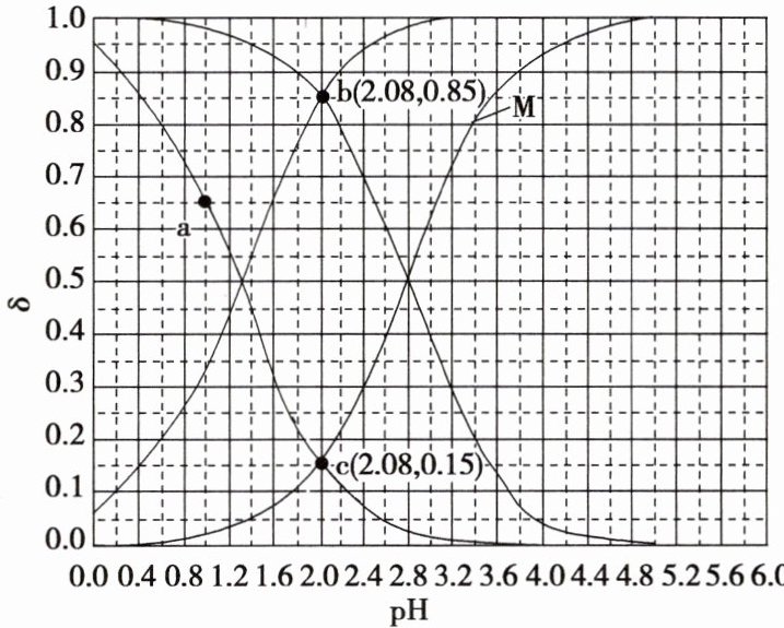 D.$pH = 2.08$时,$\frac{电离度\ \alpha(CH_2ClCOOH)}{电离度\ \alpha(CHCl_2COOH)} = \frac{0.15}{0.85}$