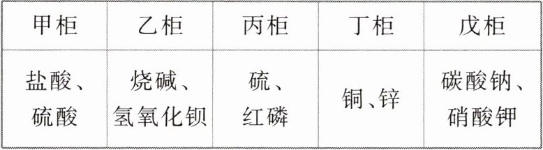 4. 实验室有五个药品柜,已经存放的药品如表所示:
