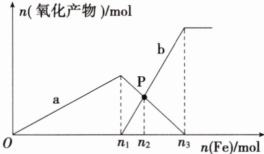 2.C 该反应可以看作两步:①Fe+4H⁺+NO₃⁻=Fe³⁺+NO↑+2H₂O,由方程式知,1mol NO₃⁻完全氧化需要消耗4mol H⁺,而溶液中氢离子只有3mol,则硝酸根离子过量,氢离子不足;②2Fe³⁺+Fe=3Fe²⁺。a表示Fe³⁺的关系曲线,A正确;溶液中共有3mol H⁺参加反应,消耗0.75mol铁,B正确;P点n(Fe²⁺)=n(Fe³⁺),两者均为0.45mol,C错误;向P点溶液中加入铜粉,发生反应:2Fe³⁺+Cu=2Fe²⁺+Cu²⁺,由选项C知,P点剩余0.45mol Fe³⁺,则最多可溶解0.225mol铜,质量为14.4g,D正确。