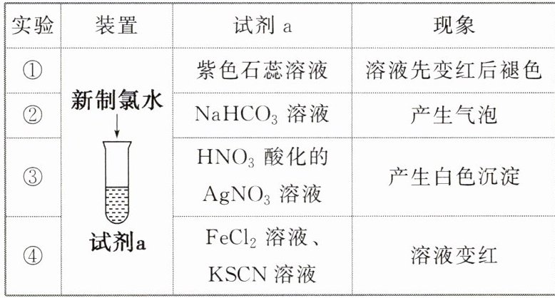 A.实验①说明新制氯水中含有 $H^{+}$、$HClO$