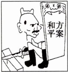 下图是华君武先生在抗日战争后作的一幅漫画,名为《磨好刀再杀》。