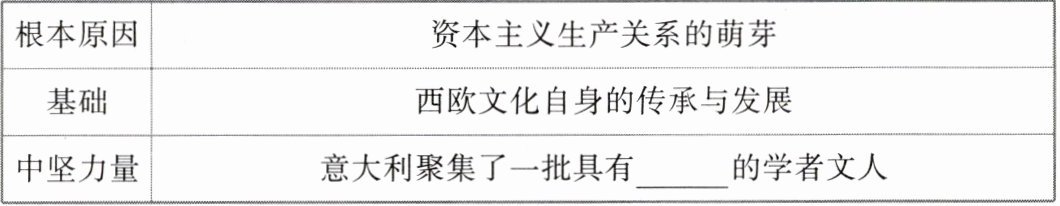 原因:资本主义尚处于萌芽阶段,资产阶级力量弱小,天主教会势力强大,为了减少教会势力的阻挠,以“复兴古典文化”为名。