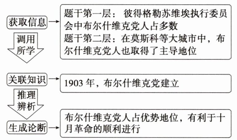 A[获取信息] --> B[题干第一层:彼得格勒苏维埃执行委员会中布尔什维克党人占多数]