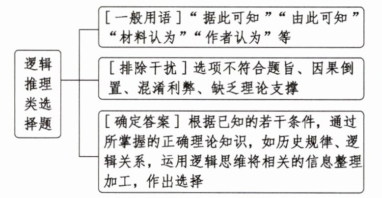 A[逻辑推理类选择题] --> B[一般用语:“据此可知”“由此可知”“材料认为”“作者认为”等]