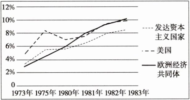 变式训练1 (2025·湖南宁乡调研)下图为1973—1983年欧美主要资本主义国家失业率统计,对其解释合理的是(