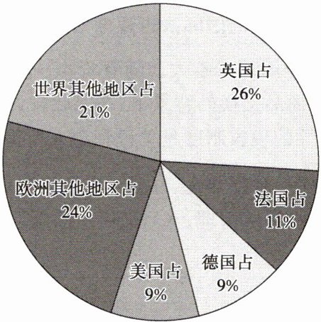 特点:英国的国际贸易几乎相当于法、德、美三国的总和,取得垄断性国际地位。