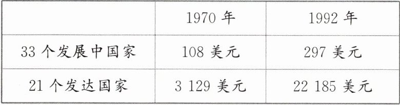 材料三 发展中国家与发达国家人均国内生产总值比较表
