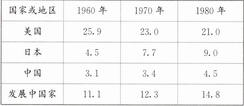 (2)经济现象:在1960—1980年世界生产总值中,日本增长显著;中国及发展中国家增长较快;美国所占比例呈下降趋势。