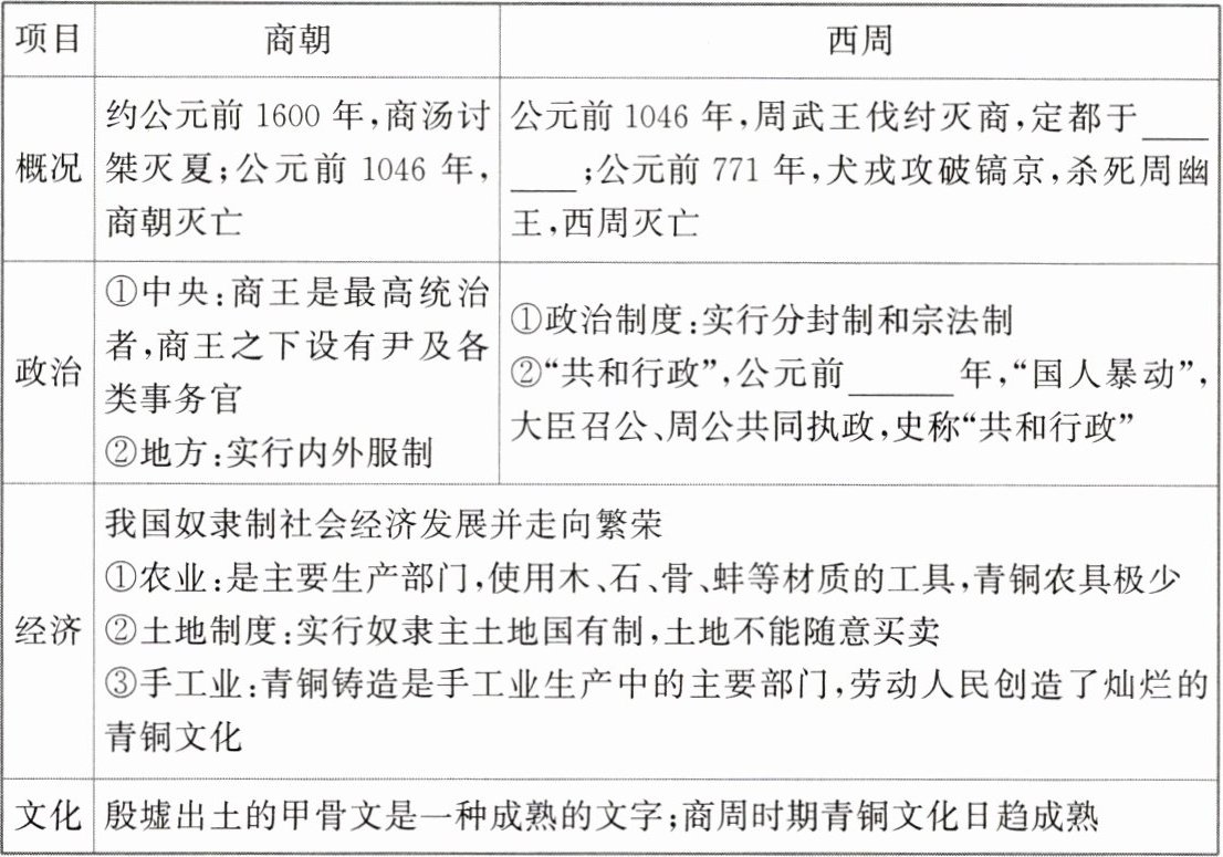 (2)①世袭制 2.镐京 841 4.能。传世文献和金文中有不少关于夏朝的记载,以二里头遗址为代表的夏文化遗址为夏朝的存在提供了考古学依据。 5.分封制与宗法制密切结合,形成了严格的等级统治秩序。 7.实现政治认同,扩大文化影响,促进民族交融,形成华夏民族共同体。