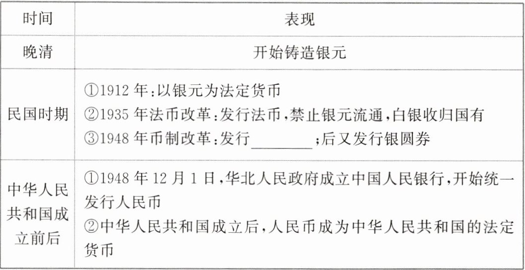 | 中华人民共和国成立前后 | ①1948年12月1日,华北人民政府成立中国人民银行,开始统一发行人民币