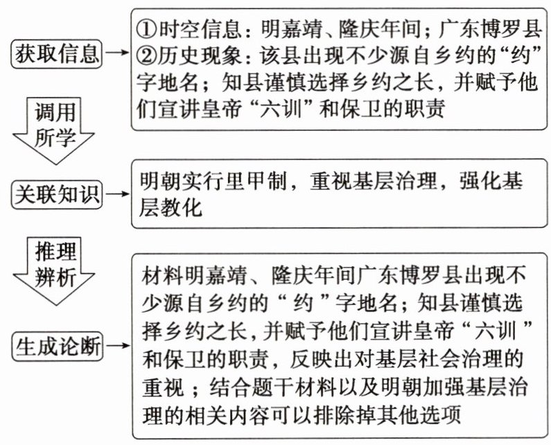 史料实证:史料→“《博罗县志》关于‘约’字地名以及知县具体措施的记载;实证→该县对基层社会治理非常重视。