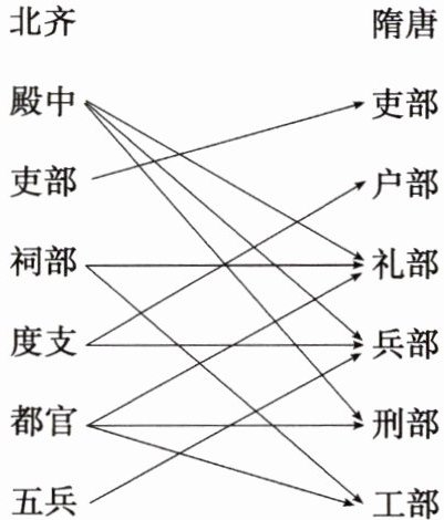 真题2.(2022·广东卷) 下面是南北朝时期北齐到隋唐政府机构变化示意图,这一变化(
