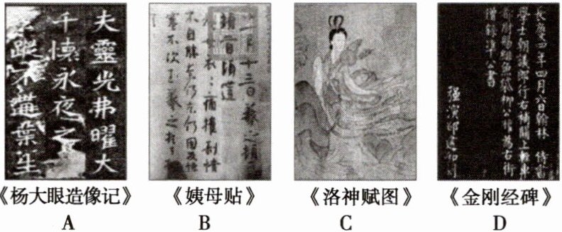 变式训练4.(2025·河南南阳调研) 《广川书跋》评价某一艺术作品:有钟繇、王羲之作品的秀美,兼具魏碑作品的雄健,是中唐艺术的代表之一。下列艺术作品符合这一评价的是(