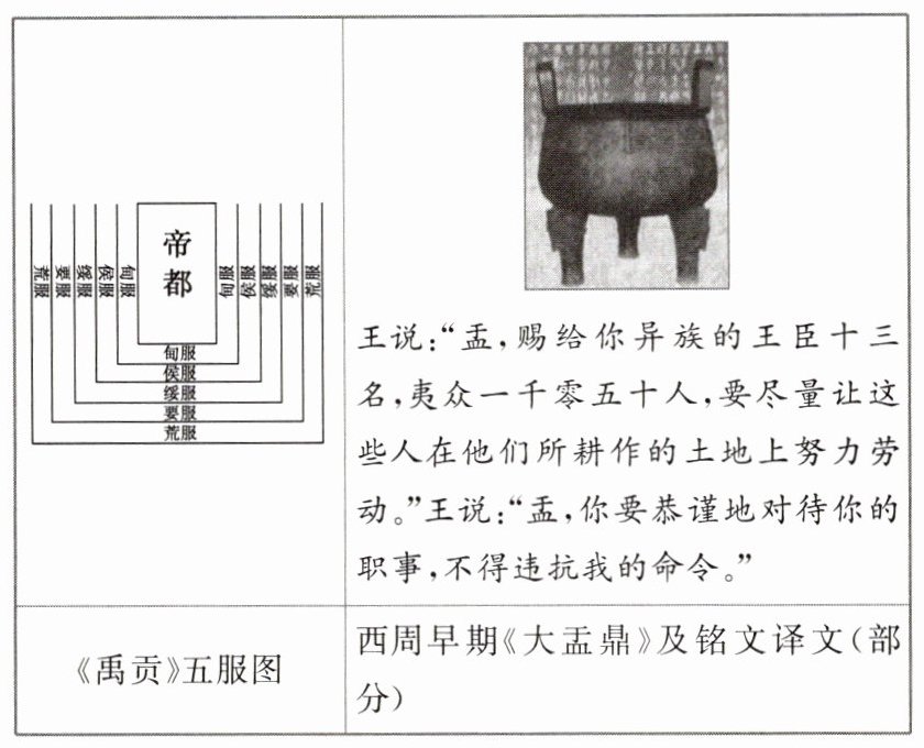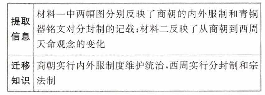(1)制度:内外服制和分封制。异:分封制相比于内外服制具有明晰的权利与义务原则,并依托血缘关系,强化了中央对地方的统治。同:都未实现中央集权。