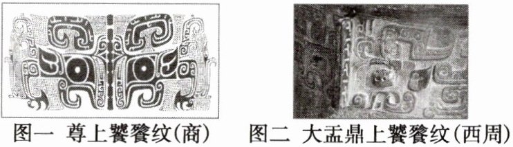 C 据材料可知,饕餮纹在商代具备祖神和神的双重特征,商人对饕餮的崇拜、祭祀,蕴含支撑商政权的目的,而周代的饕餮纹已经动物化、世俗化,即周人试图强化商周更替的文化认同,C项正确;饕餮纹饰的变化与礼乐制度无关,排除A项;从材料中不能推断出人文意识开始出现,并且人文意识强调人的作用,材料未体现,排除B项;商周之际,宗教神权尚未终结,排除D项。