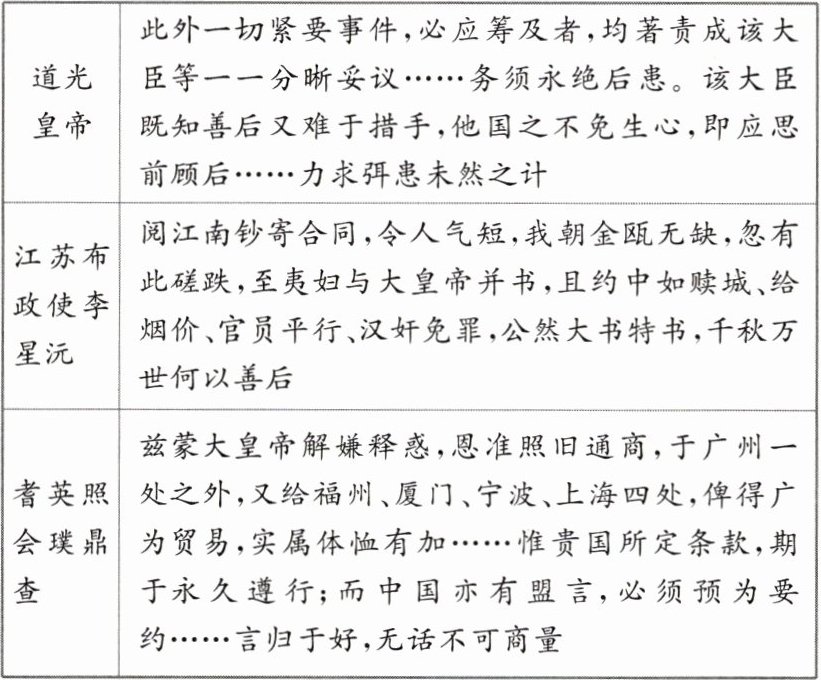 探究:根据材料并结合所学知识,概述清朝君臣对《南京条约》的看法,并进行评价。
