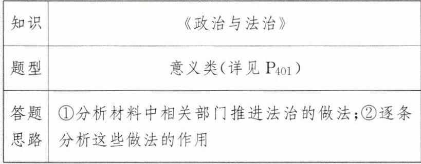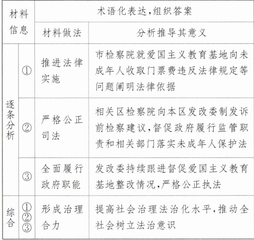 答题 ①分析材料中相关部门推进法治的做法;②逐条
