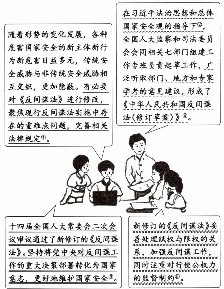 思维可视化 (2024·江苏南京高三期末)2023年7月1日,新修订的《中华人民共和国反间谍法》(以下简称《反间谍法》)正式施行。同学们围绕“从《反间谍法》修订看科学立法”议题进行探究活动,请你参与其中。