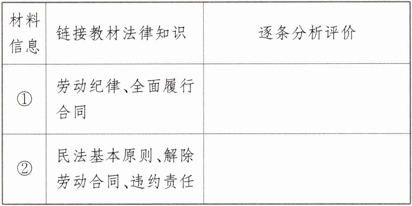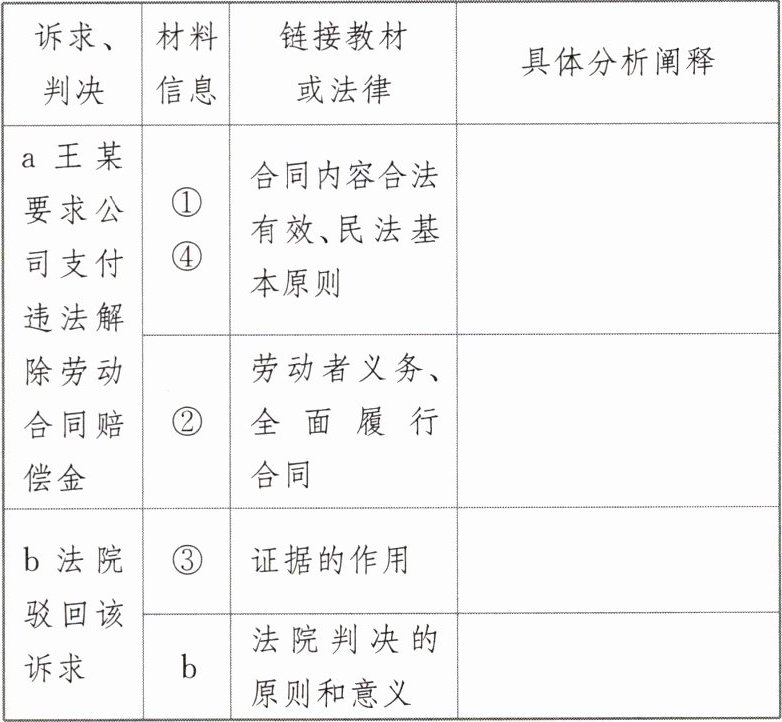 对提取的材料有效信息,逐条寻找与之有关的法律依据(教材法律知识、材料补充的法律条款)→分析材料中的信息符合或违背相应法律→回应法院的某项判决