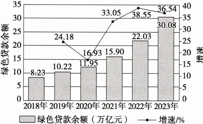 2023年我国金融机构绿色贷款余额及其增长情况。